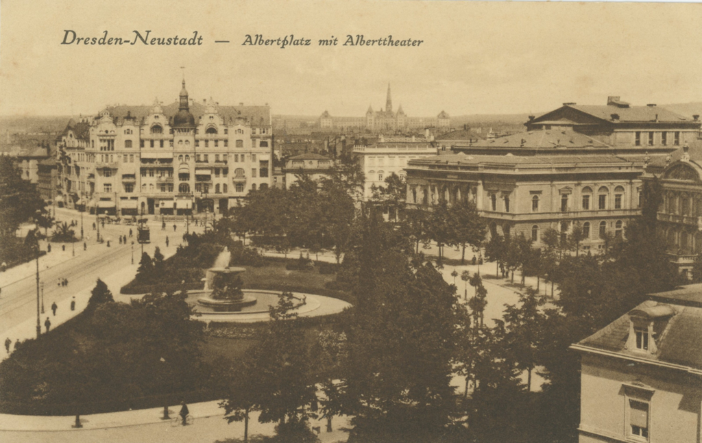 Albertplatz mit Alberttheater Dresden-Neustadt Quelle: Postkarte (Verlag unbekannt)